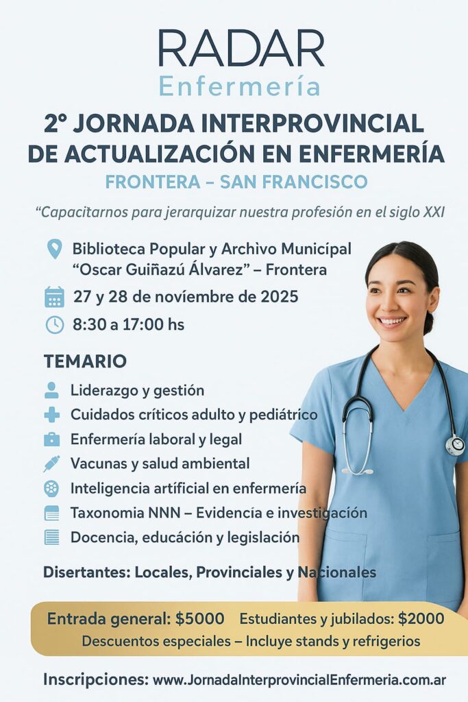 Co-organizado por RADAR ENFERMERÍA y el Gobierno de Frontera, el evento reunirá a reconocidos profesionales y estudiantes de enfermería de toda la región.